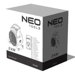 NEO TOOLS Keramischer Elektroheizer PTC, 2kW, Mit Thermostat Und Leistungsschalter, Mit Gebläse, Geräuscharm, Niedriger Energieverbrauch, Einstellbarer Winkel, Luftstrom 197 M3/h