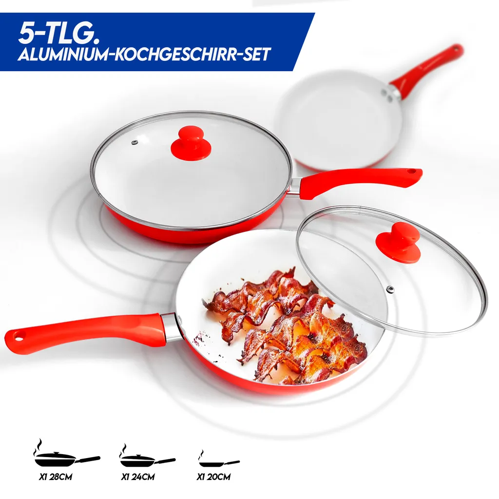 Nichtbekant Pfannenset Keramik 5-tlg Bratpfannen Rot Neu