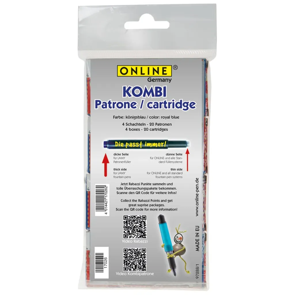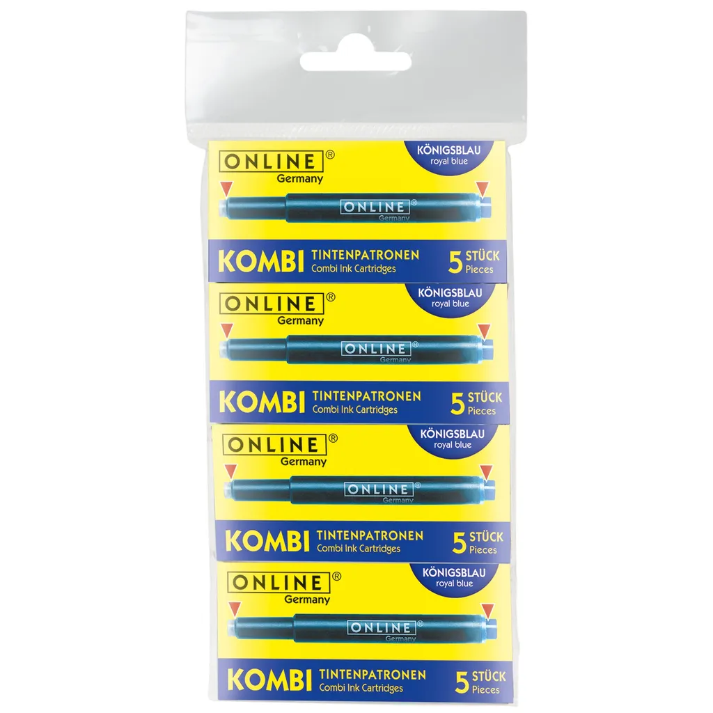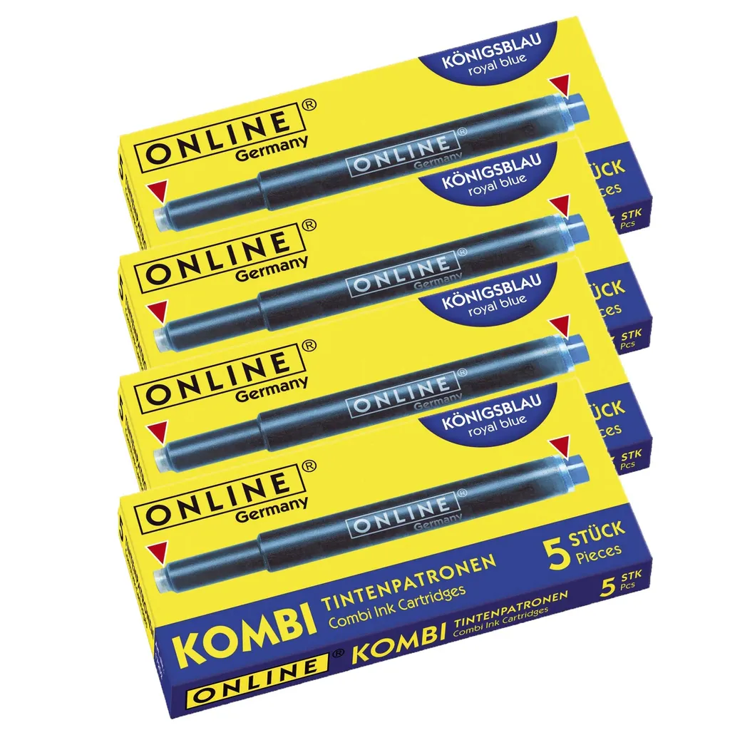 ONLINE Schreibgeräte ONLINE-Kombipatrone Maxi-Pack, Der Problemlöser Für ONLINE + Standard + LAMY-Füllersysteme, Königsblau, Löschbar, 4 Päckchen à 5 Patronen