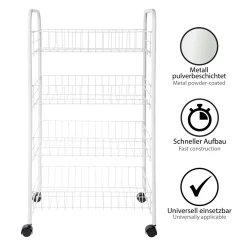 ONVAYA® Beistellwagen Susi Mit 4 Körben | Weiß | 39x26x76 Cm | Rollwagen | Küchenwagen | Wagen | Metall | Regal | Bad | Servierwagen | Haushaltswagen | Allzweckwagen | Küchentrolley
