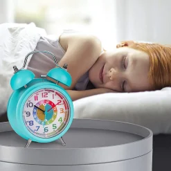 ONVAYA® Kinderwecker Analog | Türkis | Lernuhr Für Kinder | Retro Wecker Ohne Ticken | Lernwecker Mit Licht & Musik | Quarzwecker | Glockenwecker | Kinderuhr Spielzeug Für Jungen & Mädchen