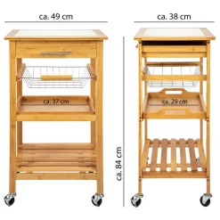 ONVAYA Küchenwagen Kyoto Auf Rollen, Küchenrollwagen Aus Bambus Mit Arbeitsplatte Schwarz Aus Stein, Praktischer Beistellwagen Für Die Küche Inkl. Schubladen