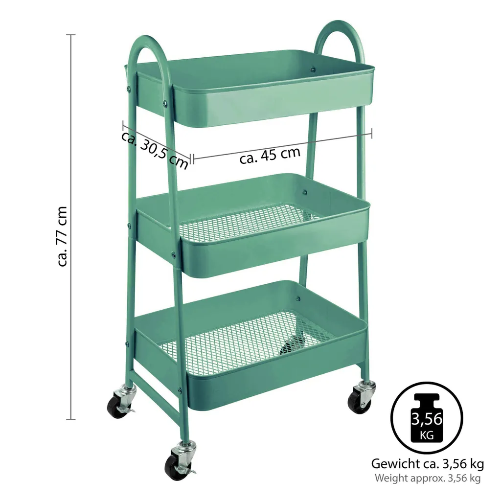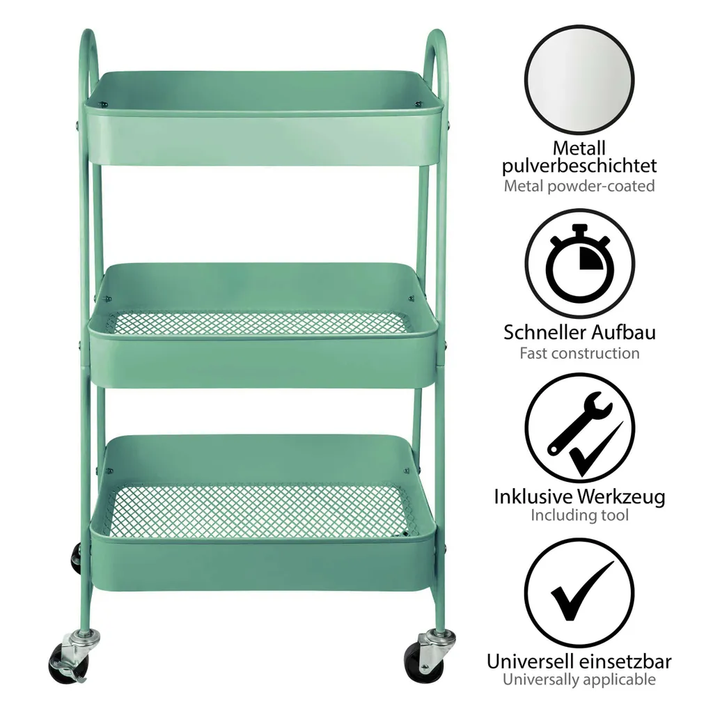 ONVAYA® Servierwagen Silvio | Beistellwagen | Mint | 30,5 X 45 X 77 Cm | 3 Fächer | Multifunktionswagen | Transportwagen | Allzweckwagen | Küchentrolley | Nischenregal