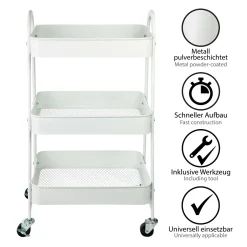 ONVAYA® Servierwagen Silvio | Beistellwagen | Weiß | 30,5 X 45 X 77 Cm | 3 Fächer | Multifunktionswagen | Transportwagen | Allzweckwagen | Küchentrolley | Nischenregal