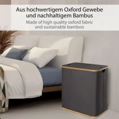 ONVAYA® Wäschekorb Mit Deckel | 2 Fächer | Dunkelgrau | Wäschesammler Fürs Badezimmer | Wäschetruhe Aus Bambus-Holz & Oxford-Stoff | Design Wäschebox | Wäschesortierer