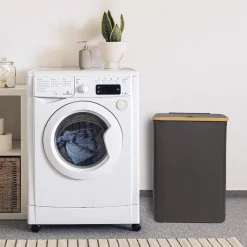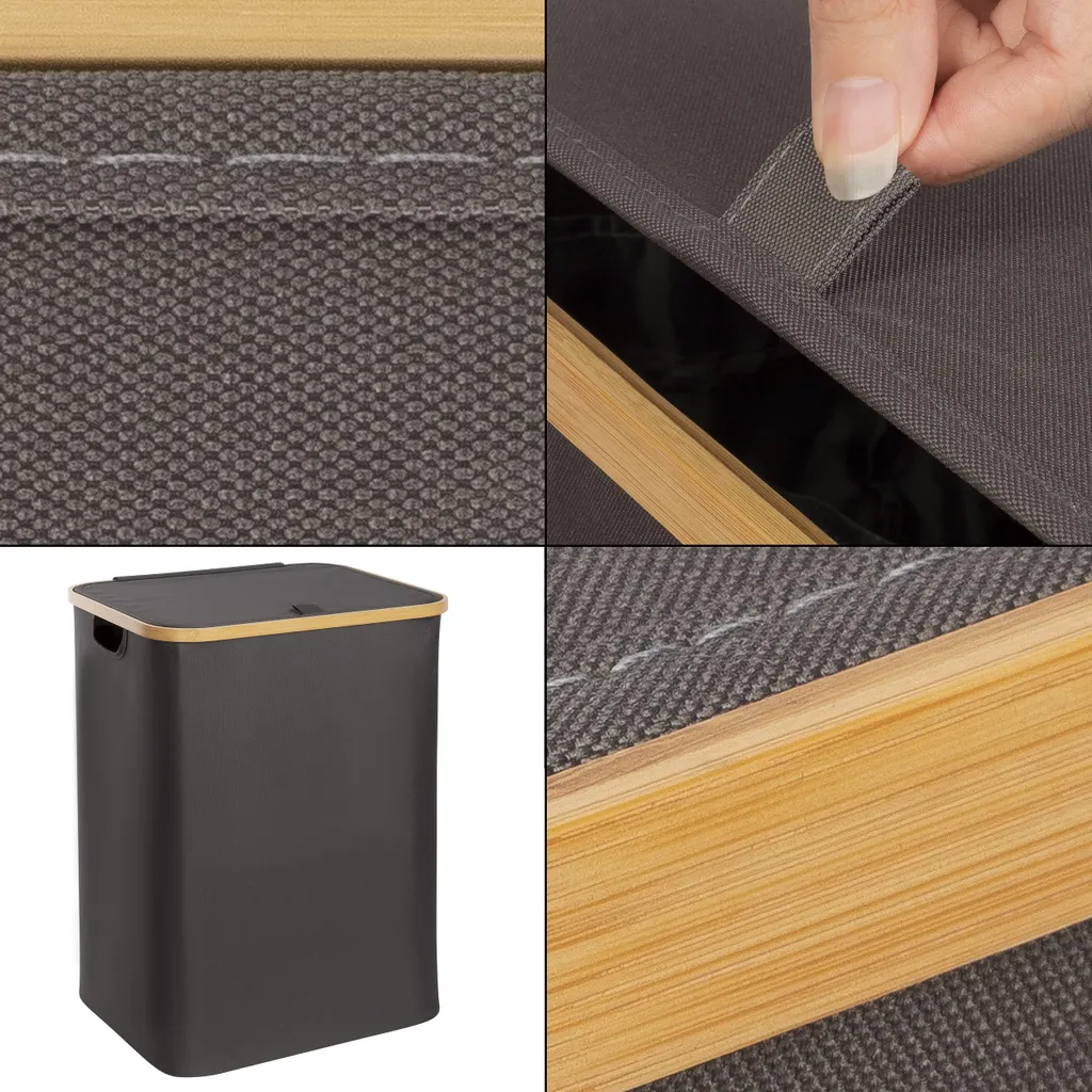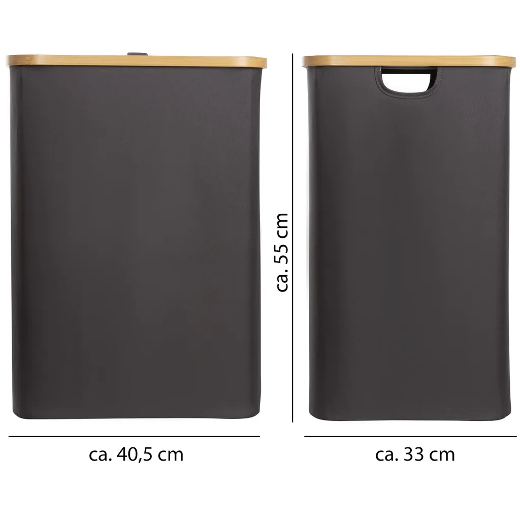 ONVAYA® Wäschekorb Mit Deckel | 70 Liter | Dunkelgrau | Wäschesammler Fürs Badezimmer | Wäschetruhe Aus Bambus-Holz & Oxford-Stoff | Design Wäschebox | Wäschesortierer