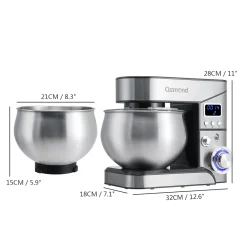 OSMOND 6Gang 5L Küchenmaschine Knetmaschine 1300W LCD StandMixer Edelstahl Rührschüssel Edelstahlschüssel Teigmaschin – Silber