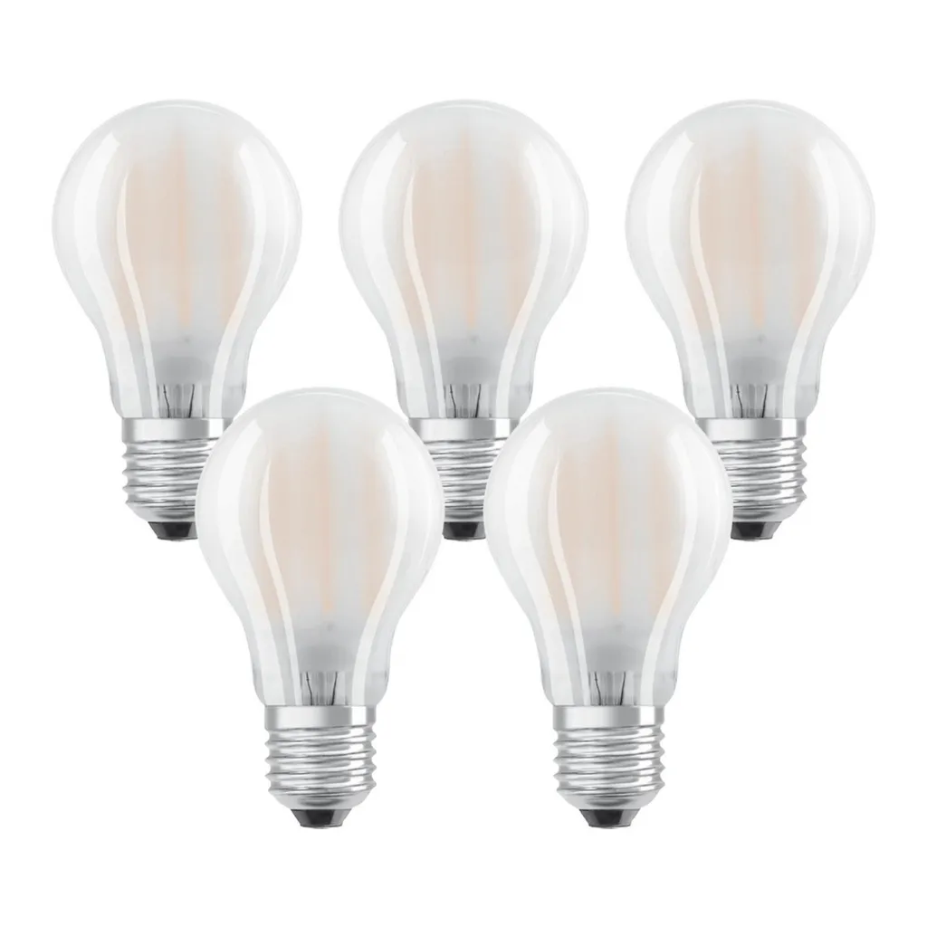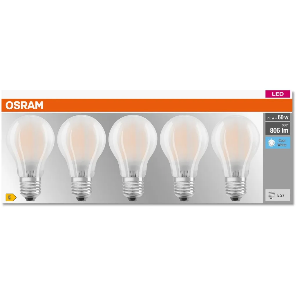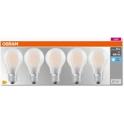 OSRAM LED BASE Classic A60, Matte Filament LED-Lampen Aus Glas Für E27 Sockel, Birnenform, Kaltweiß (4000K), 806 Lumen, Ersatz Für Herkömmliche 60W-Glühbirnen, 5er-Box