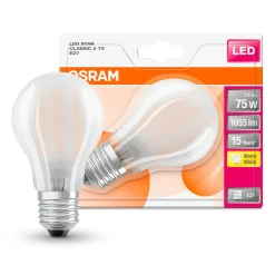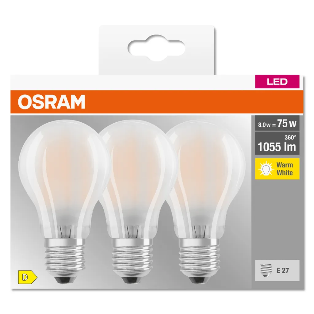 OSRAM LED BASE Classic A75, Matte Filament LED-Lampen Aus Glas Für E27 Sockel, Birnenform, Warmweiß (2700K), 1055 Lumen, Ersatz Für Herkömmliche 75W-Glühbirnen, 3er-Box