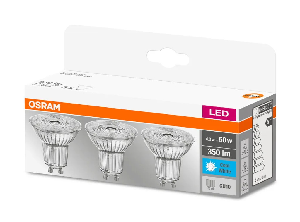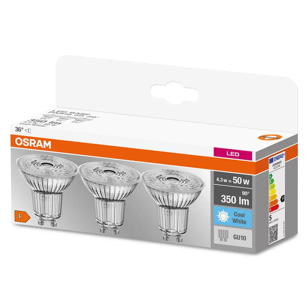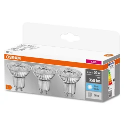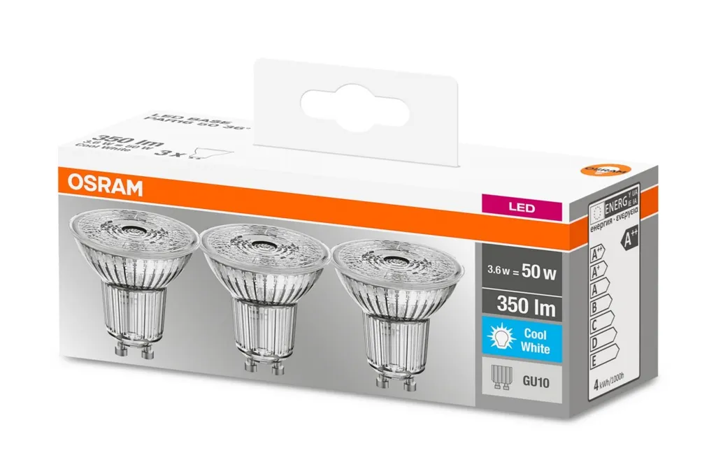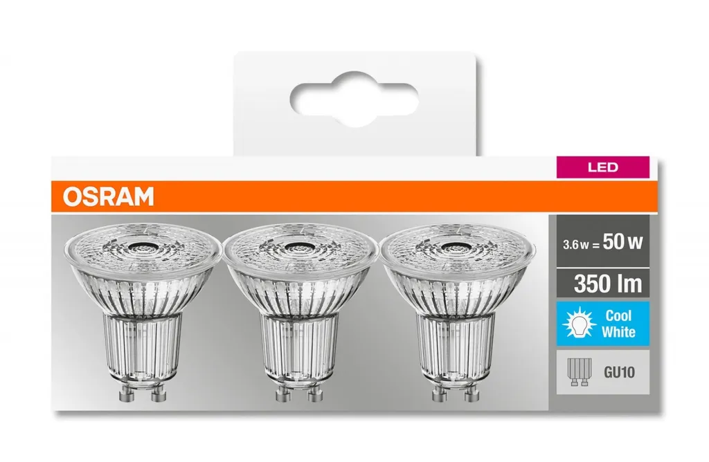 Osram LED Lampe Ersetzt 50W Gu10 Reflektor – Par16 In Transparent 4,3W 350lm 4000K 3er Pack