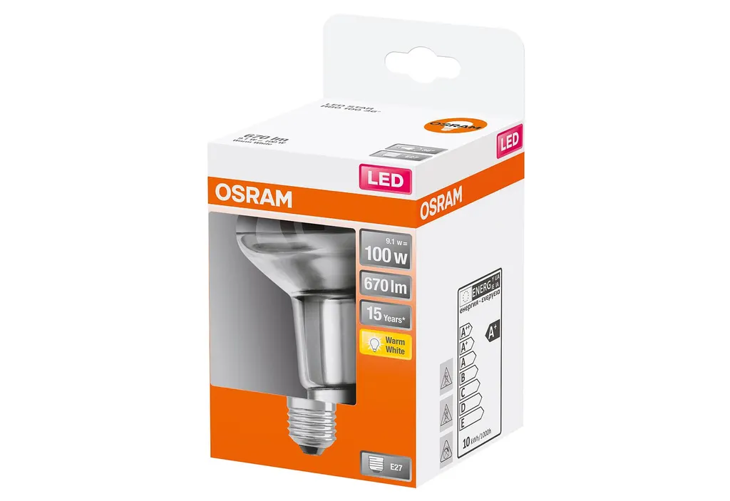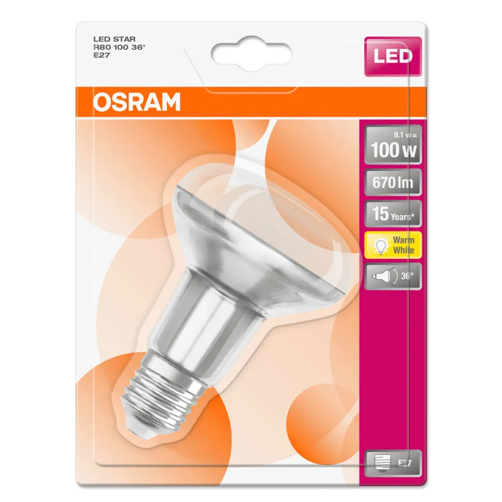 Osram LED Leuchtmittel Star R80 100 E27 9,1W Warmweiß, Klar