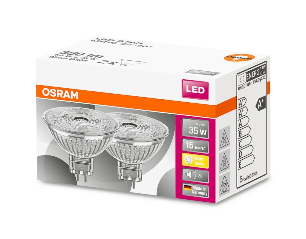 Osram Niedervolt LED Reflektor GU5.3 4,6W 2er Pack, Warmweiß, Klar