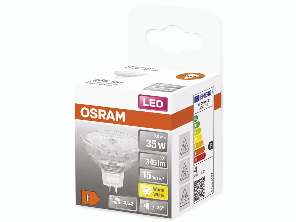 OSRAM Star Reflektor LED-Lampe Für GU5.3-Sockel, Klares Glas ,Warmweiß (2700K), 345 Lumen, Ersatz Für Herkömmliche 35W-Leuchtmittel, Nicht Dimmbar, 1-er Pack