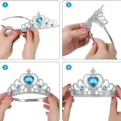 Oveo Prinzessin Elsa Kostüme Zubehör,(Blau)4-teiliges Set Elsa Krone,Elsa Handschuhe,Zauberstab,Haargeflecht