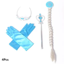 Oveo Prinzessin Elsa Kostüme Zubehör,(Blau)4-teiliges Set Elsa Krone,Elsa Handschuhe,Zauberstab,Haargeflecht