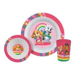 P:os 33564 – Frühstücksset Mit Paw Patrol Motiv In Pink, 3-teiliges Geschirrset Für Kinder, Aus Kunststoff, Bestehend Aus Teller, Schale Und Becher, Spülmaschinengeeignet