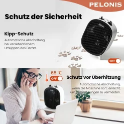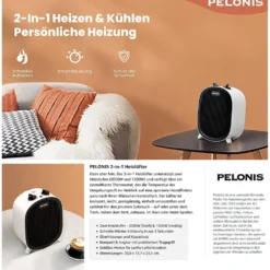 Pelonis ❤️ Heizlüfter, Energiesparend Klein 2000W Elektrische Heizung 2 Heizstufen & Gebläse-Modus, Kippschutz & Überhitzungsschutz Für Büro Wohnzimmer Schlafzimmer – Weiß