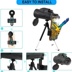 PHANPHAN Monokular Starscope Teleskop, 80×100 Hochleistungsprisma Fernrohr Mit Smartphone Halter & Stativ Wasserdichtes Monokular Beschlagfest Monokulare Teleskop Für Wandern Sightseeing, Uhr Ballspiel