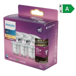 Philips LED Leuchtmittel GU10 3,5W (35W) Warmweiß 3er Pack [Energieklasse A+]