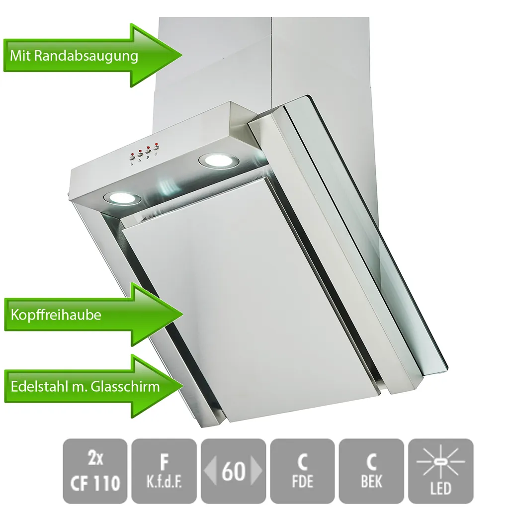 PKM Dunstabzugshaube Mit Randabsaugung Kopffreihaube 9860LZ Edelstahl Glasschirm