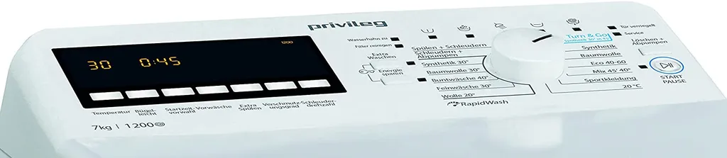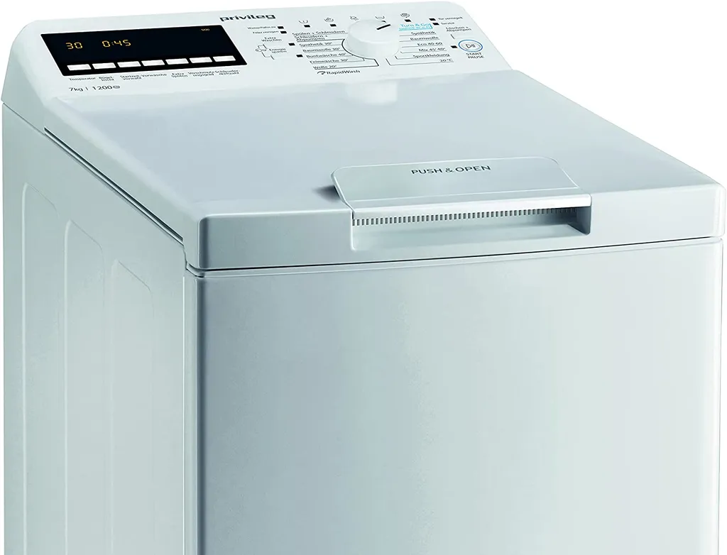 Privileg PWT E71253P N (DE) Toplader Waschmaschine / 7 Kg / 1152 UpM/Soft-Opening/Kurz 45‘/Startzeitvorwahl/Wolle-Programm/Wasserschutz/Bügelleicht-Option/Kindersicherung Weiß [