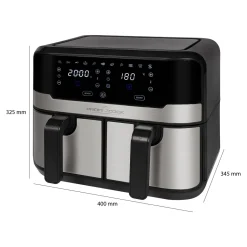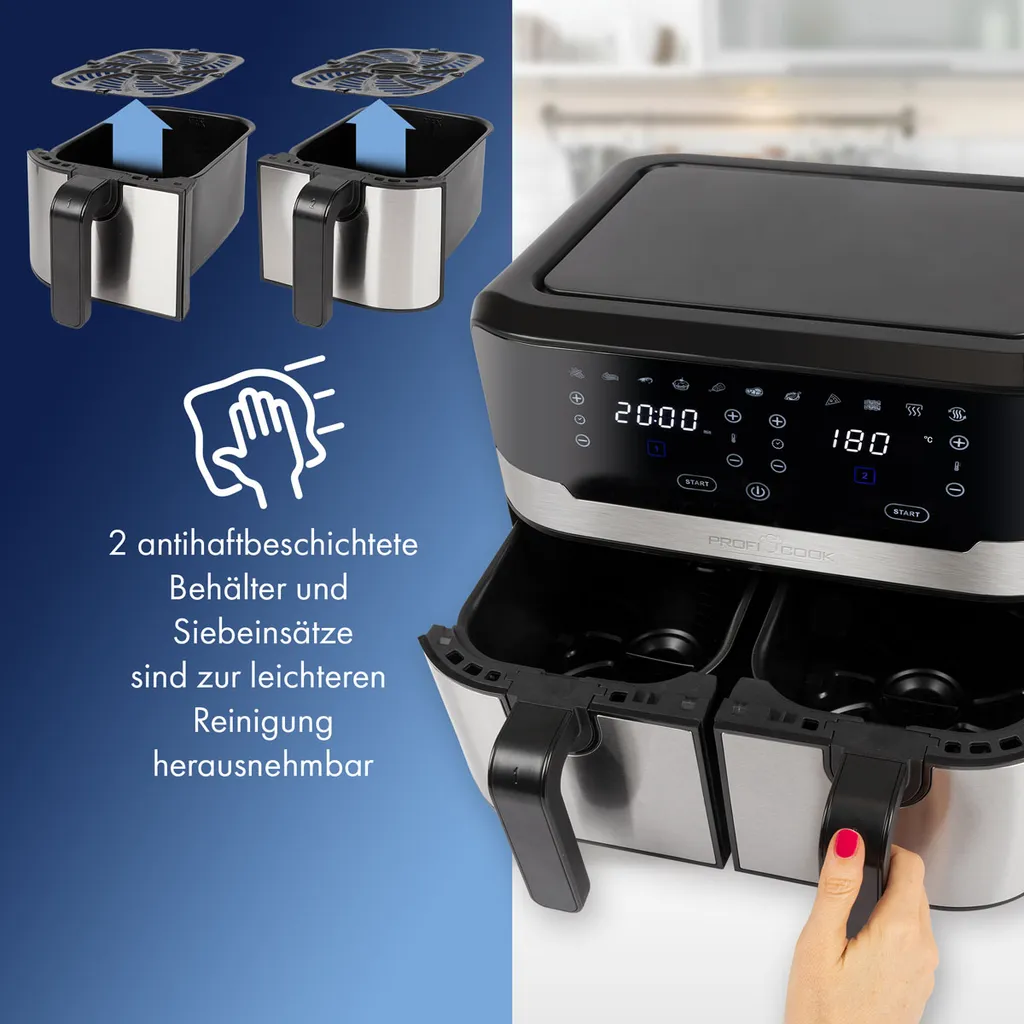 ProfiCook® Doppel-Heißluftfritteuse 9 Liter, XXL Heißluftfritteuse Doppelkammer, Frittieren Mit Heißer Luft Ohne Zusätzliches Öl, 9 Programme, Air Fryer, Touchscreen, PC-FR 1242 H, 2400W