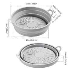 Qiangzhipow 7.5“ Zusammenklappbarer Heißluftfritteusen-Silikontopf Grau Silikon Backkorb Kompaktfriteusen