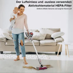 Redroad Akku Handstaubsauger , 450W, 26500Pa,Doppelte Bürste Für 4-fache Reinigungsleistung, Kabelloser Staubsauger
