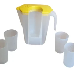 Rival Saftkrug Mit 4 Trinkbechern Pendel-Ausguss Karaffe Mit Deckel Saftkanne, Farbe:gelb
