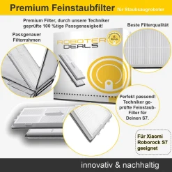 Roboter-Deals Zubehör Set (Ersatzteile) Für Roborock S7 (2x Filter, 2x Pad, 2x Seitenbürste 5arm Schwarz, 1x Hauptbürste)