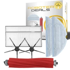 Roboter-Deals Zubehör Set (Ersatzteile) Für Roborock S7 (2x Filter, 2x Pad, 2x Seitenbürste 5arm Schwarz, 1x Hauptbürste)