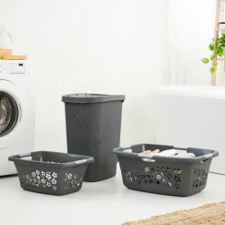 ROTHO 3er Set Wäschekorb 50l FLOWERS, Farbe:Anthrazit