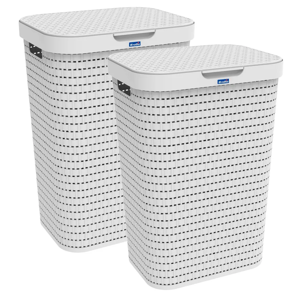 ROTHO Set Wäschesammler 55l COUNTRY , Farbe:Weiß