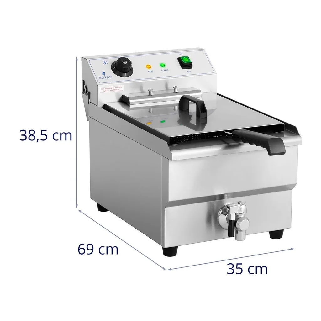 Royal-catering Fritteuse Elektro Fritteuse Edelstahl Gastronomie Ablasshahn Kaltzone 6000 W 16L