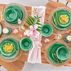Sänger SÄNGER Steingut Geschirrset Palm Beach, Tafelservice & Servierplatten Set 23 Teilig Für 4 Personen