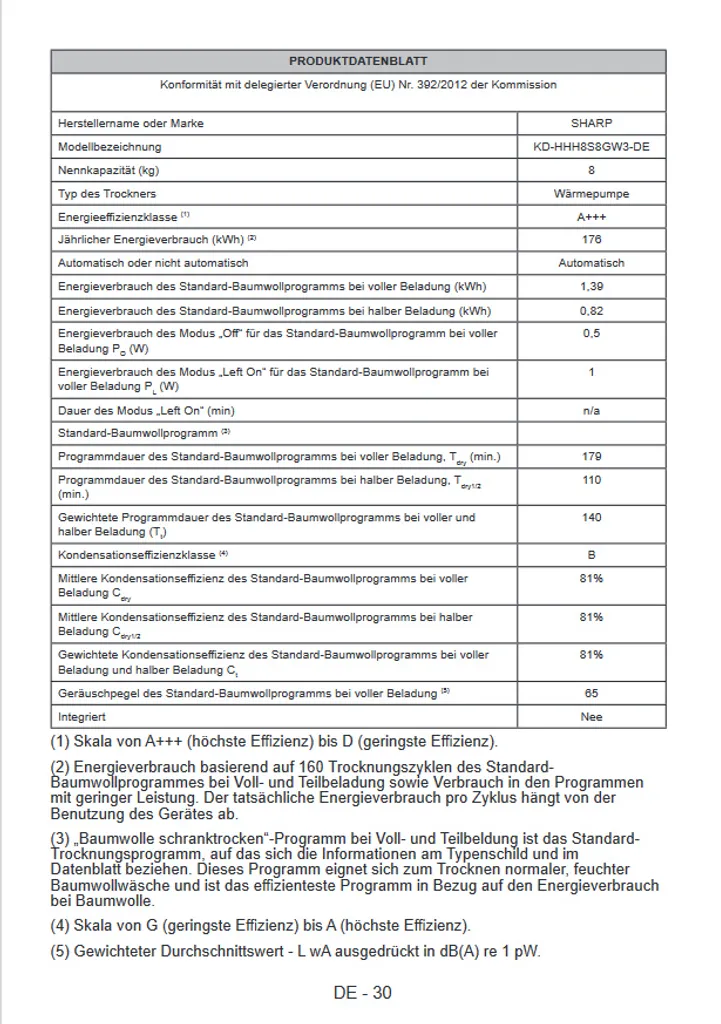 Sharp KD-HHH8S8GW3-DE Wäschetrockner Trockner Wärmepumpentrockner 8kg