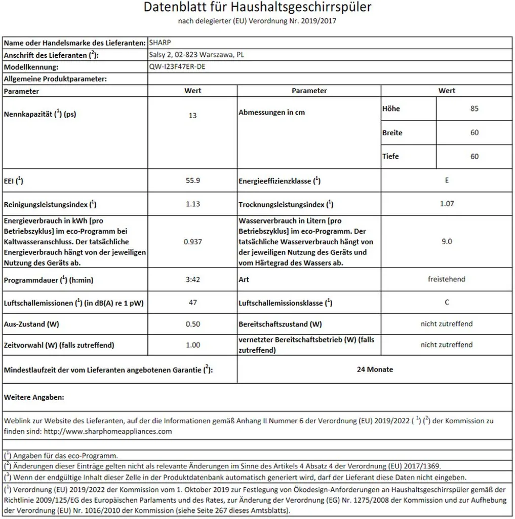 Sharp – QW-I23F47ER-DE – Stand-Geschirrspüler – Rot – 60 Cm