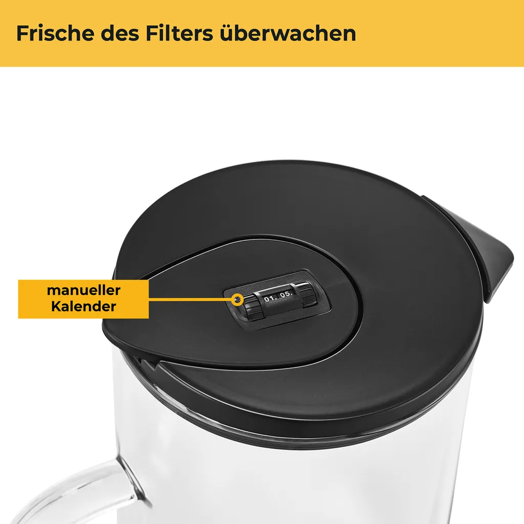 SILBERTHAL Wasserfilter Glas Karaffe 2,7 Liter – Inklusive 1 Wasserfilter-Kartusche – Reduziert Kalk Und Chlor Im Trinkwasser