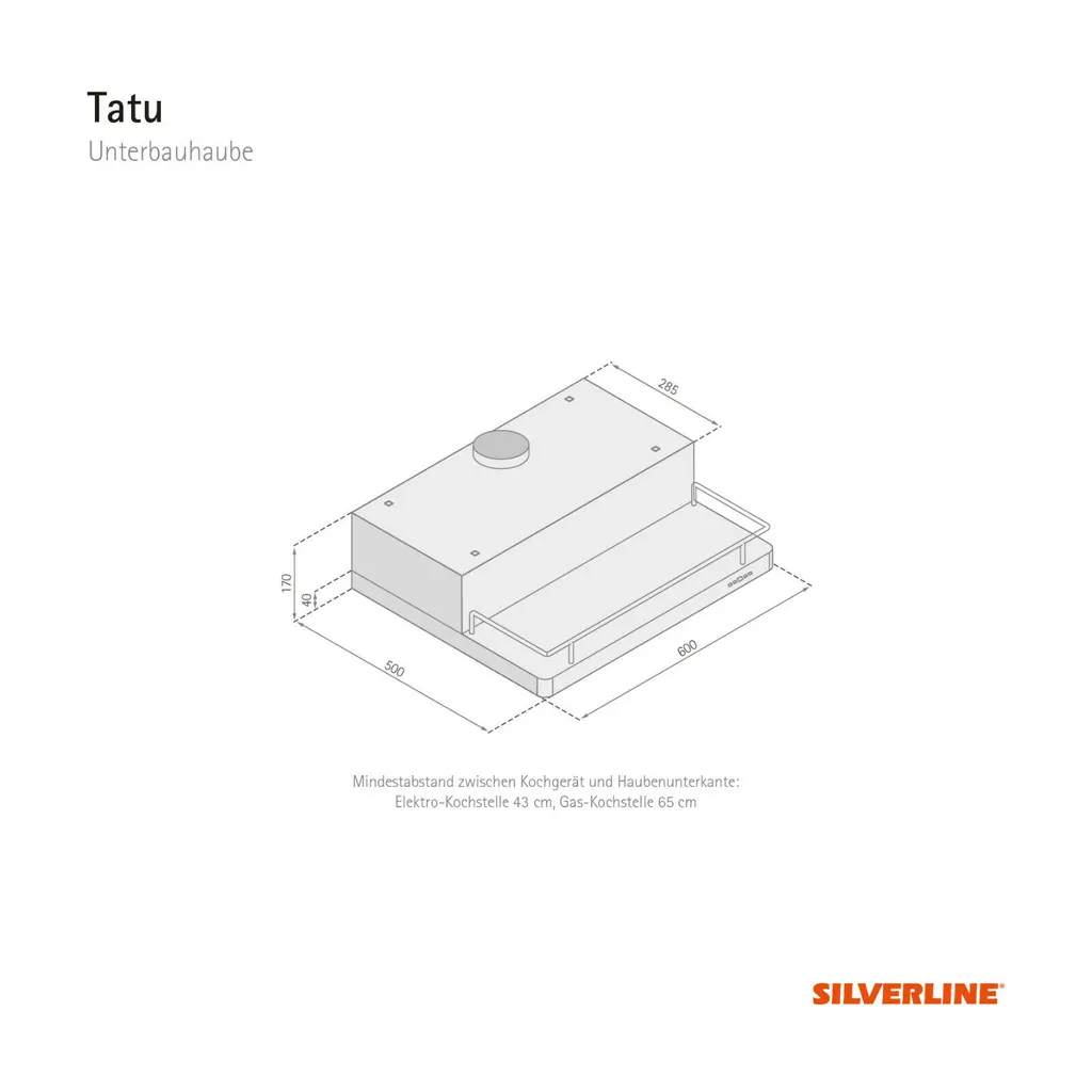 Silverline Küchengeräte Silverline TTU 600 E / Tatu Unterbauhaube / 60 Cm Breite / 580 M3/h
