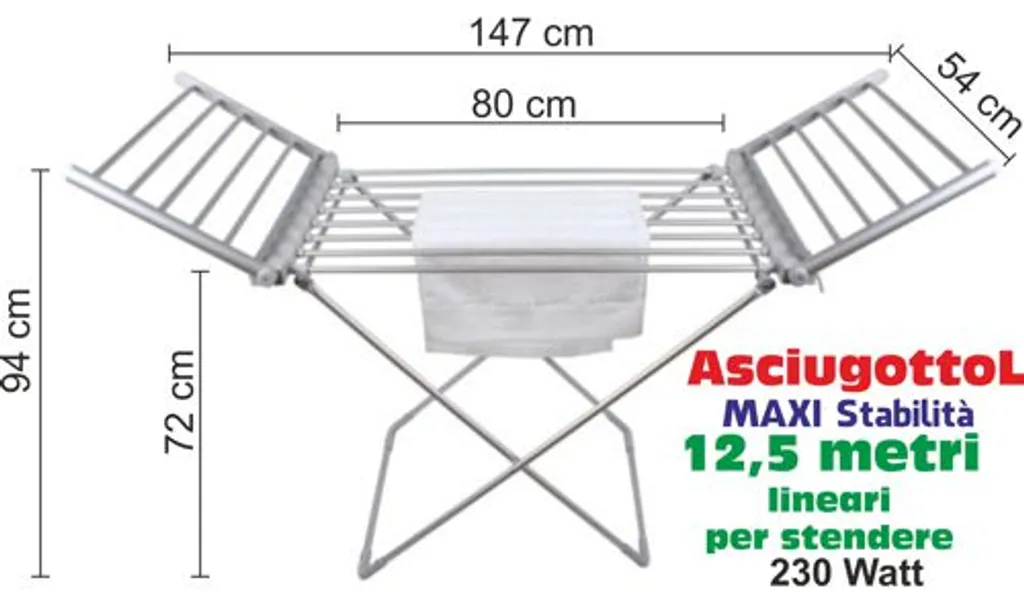 Sirge ASCIUGOTTOL Wäschetrockner Elektrische Wäscheleine Trockner 230 WATT – [12,5 Laufende Meter] – Faltbare 20 Heizelemente