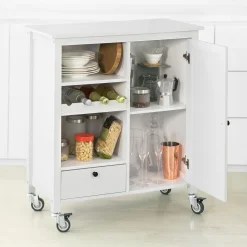 SoBuy FKW104-W Küchenwagen Servierwagen Rollwagen Mit Tür, Flaschenablage Und Schublade Weiß BHT Ca.: 80x93x40cm