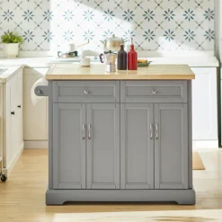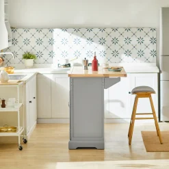 SoBuy FKW71-HG Kücheninsel Küchenwagen Mit Erweiterbarer Arbeitsplatte Küchenschrank Servierwagen Holz BHT Ca.: 115x92x46-71cm