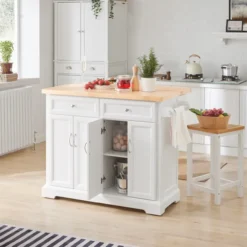 SoBuy FKW71-WN Kücheninsel Küchenwagen Mit Erweiterbarer Arbeitsplatte Küchenschrank Servierwagen Holz Weiß BHT Ca.: 115x92x46-71cm