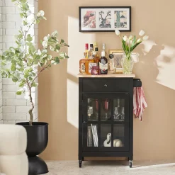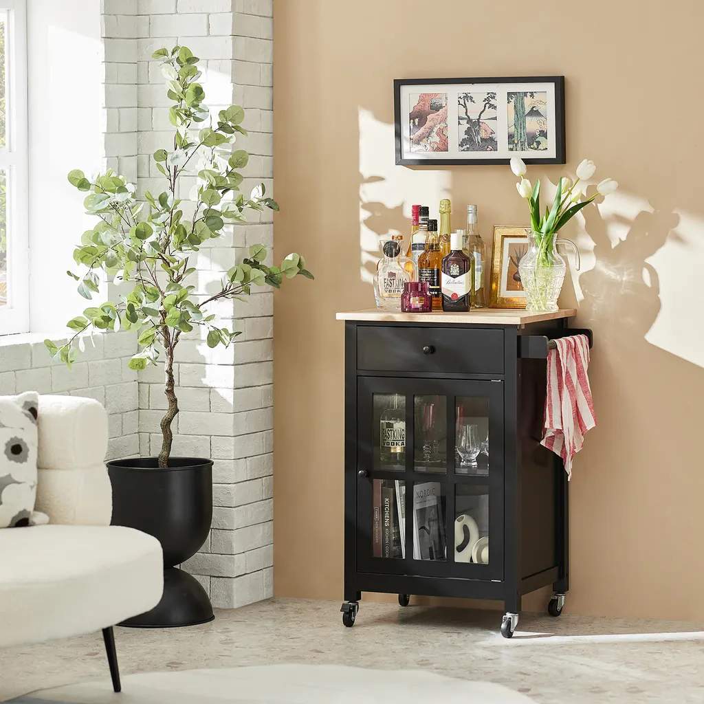 SoBuy FKW98-SCH Küchenwagen Mit 1 Tür Und Schublade Servierwagen Mit Arbeitsplatte Beistellwagen Rollwagen Schwarz BHT Ca.: 62x87x46cm