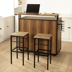 SoBuy KNL02-PF Design Küchenwagen Mit Arbeitsplatte Kücheninsel Küchenschrank Sideboard Auf Rollen Küchentrolley Vintage BHT Ca.: 113x106x69cm