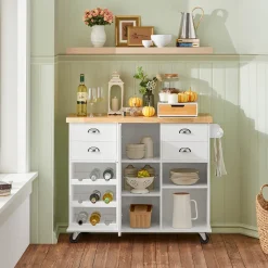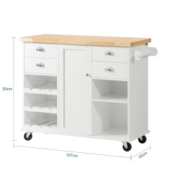 SoBuy KNL03-WN Küchenwagen Kücheninsel Mit 1 Handtuchhalter Küchenschrank Rollwagen Sideboard Auf Rollen Küchentrolley Servierwagen Mit Flaschenablagen Und Schublade BHT Ca.: 107x93x45cm