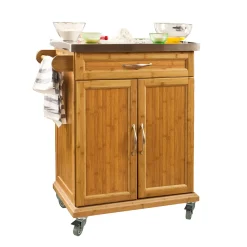 SoBuy Küchenwagen Aus Bambus Mit Edelstahltop, Servierwagen FKW13-N