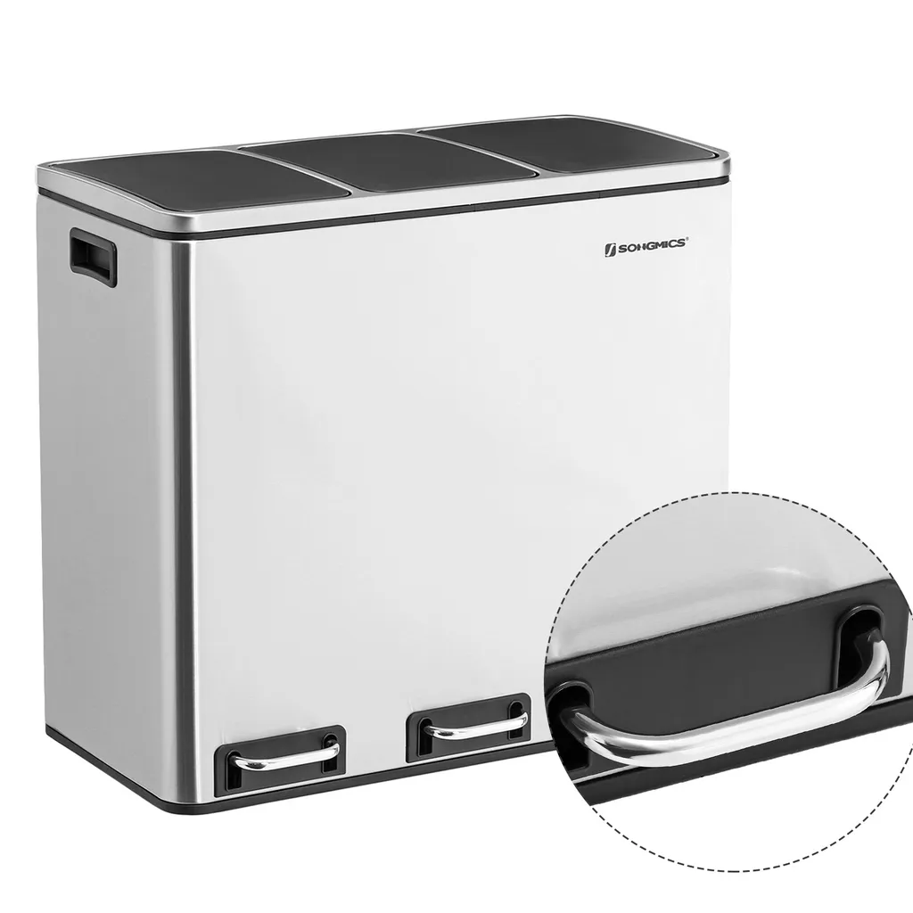 SONGMICS Mülleimer 54L Treteimer 3 X18L Edelstahl Abfalleimer Mit Fußpedal Handgriffen Und 3 Inneneimern Aus Kunststoff LTB54NL