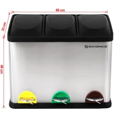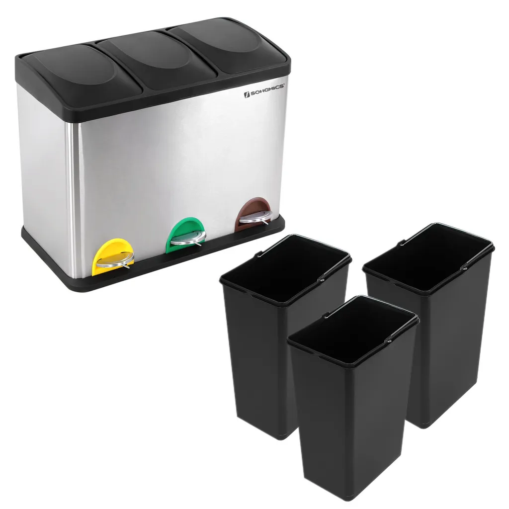 SONGMICS Mülleimer Abfalleimer Treteimer Mit Fußpedal Handgriffen Und 3 Inneneimern Aus Kunststoff Edelstahl LTB45L