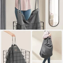 SONGMICS Wäschekorb 90L, Faltbarer Wäschesammler, Abnehmbarer Und Waschbarer Wäschesack, Metalldrahtgestell, Für Schlafzimmer, Bad, Waschküche, Schwarz-grau LCB190G01